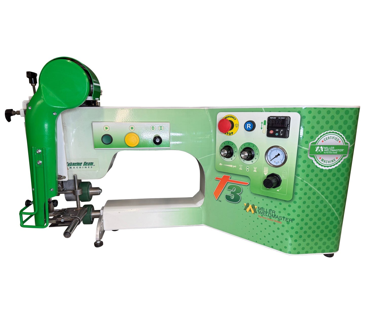 Miller Weldmaster's T500 Extreme Seam Welder is a rotary hot wedge welding machine intended to heat-seal weldable thermal plastics