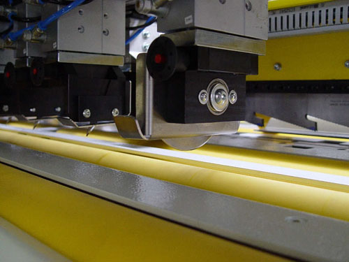 - The slots are punched out by a system of blades attached to the scoring beam.